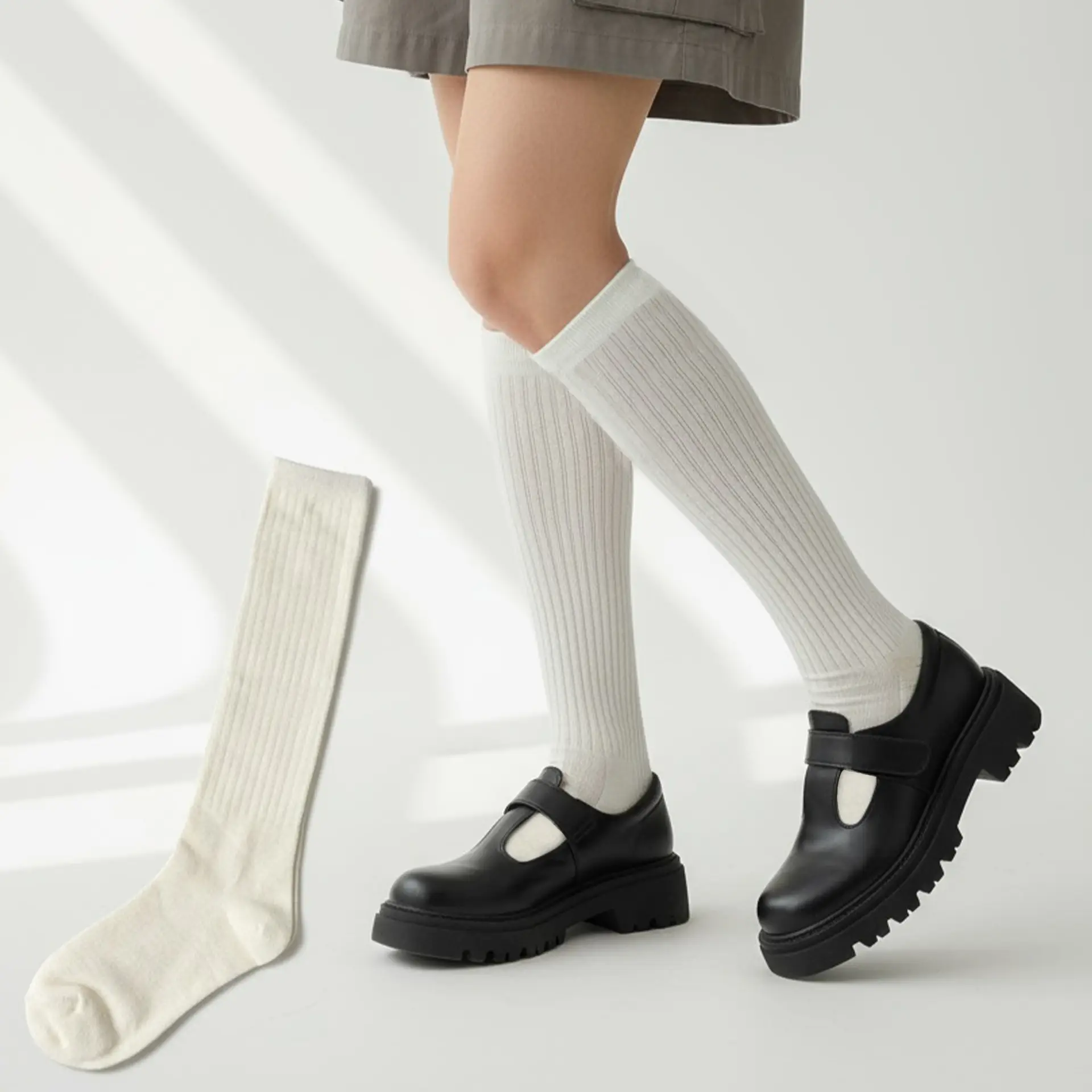 Long rib knit socks perfect for casual or layered outfits.